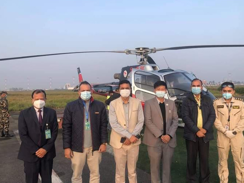 सोलुखुम्बु, २१ कार्तिक । संस्कृति पर्यटन तथा नागरिक उड्डयनमन्त्री योगेश भट्टराईलाई थुलुङ दुधकोशी गाउँपालिकाको काँगेलमा भब्य स्वागत गरिएको छ। कांगेल डांडा बिमानस्थल पुन संचालनको संभाब्यता अध्ययनका लागि सोलुखुम्बुबाट निर्बाचित संघीय सांसद हेमकुमार राईसहित त्यहाँ पुगेका मन्त्री भट्टराईलाई गाउँपालिका अध्यक्ष अशिम राइ सहितका जनप्रतिनिधि र स्थानीयले स्वागत गरेका थिए।