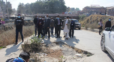 ‘अबको एक हप्तामा करिडोरमा देखिएका यस्ता खाल्डाखुल्डी तत्काल पुरिनुपर्छ, हजारौं सवारी साधन सञ्चालन हुने बाटोको अवस्था यस्तो हुनुहुँदैन,’ उहाँले थप्नुभयो । मन्त्रीको निर्देशनपछि तिवारीले बढी खाल्डाखुल्डी देखिएका सडकमा एक साताभित्र पुरिसक्ने जानकारी दिनुभयो । अवलोकनको क्रममा प्रधानमन्त्रीका विदेश मामिला सल्लाहकार डा. राजन भट्टराईले करिडोर निर्माण कार्यलाई द्रुतगतिमा अघि बढाउनुपर्ने सुझाव दिनुभयो