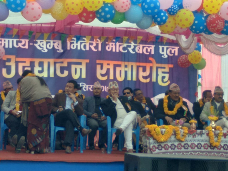कार्यक्रममा संघीय सांसद हेमकुमार राई सुरवीरले विकासमा सबैको हातेमालो आवश्यक रहेको भन्दै एउटै पुल उद्घाटन गर्दा विपक्षी आत्तिनु आवश्यक नरहेको बताए । उनले आधा दर्जन मोटरेबल पुल निर्माणको प्रक्रियामा रहेको भन्दै भ्रम छरेर विकास नरोकिने बताए ।