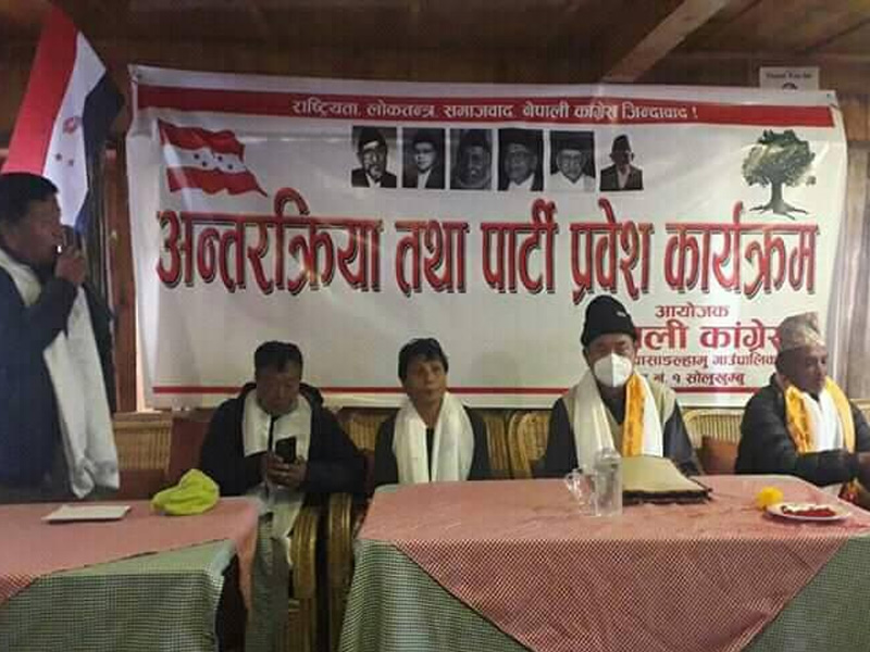 शुक्रबार आयोजित कार्यक्रममा सत्ता रुढ नेकपाका केहि कार्यकर्ता नेपाली कांग्रेसमा प्रवेश गरेका छन । नवप्रबेसी लाक्पा गेल्जेन शेर्पा, ङिमा दोर्जी शेर्पा ,आङ नुरु शेर्पा लगायत अन्य कार्यकर्ताहरुलाइ नेपाली कांग्रेस आदिवासी जनजाति बिभागका केन्द्रीय सदस्य आङछिरिङ शेर्पा, जिल्ला कार्य समिति सोलुखुम्बुका उपसभापति प्रेम थापामगर, नेपाली कांग्रेस खुम्बु पासाङल्हामु गाउँ समितिका सभापति पेम्बा छिरिङ शेर्पा,अर्का नेता चुंबा शेर्पा, जिल्ला कार्य समिति सदस्य लाक्पा नुरु शेर्पा ,वडा नम्बर ३ का सभापति ङिम तेन्जिङ शेर्पा , खुम्बु पासाङल्हामु नेपाली काङ्ग्रेसका प्रबक्ता पसाङ शेर्पा लगायतले स्वागत गरेका थिए ।