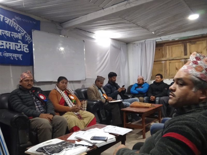 सोलुखुम्बु,१२ माघ।नेचासल्यान गाउँपालिकाका अध्यक्ष डुफकुमार बास्तोलाले ब्यबसायीहरुले नजिकका ब्यापारिक केन्द्रसँग प्रत्यक्षरुपमा व्यापारिक सम्बन्ध कायम गराउन एकजुट हुनु आवश्यक रहेको बताउंदै समय अनुसार व्यापार विविधिकरण गर्नु आवश्यक रहेको बताएका छन।