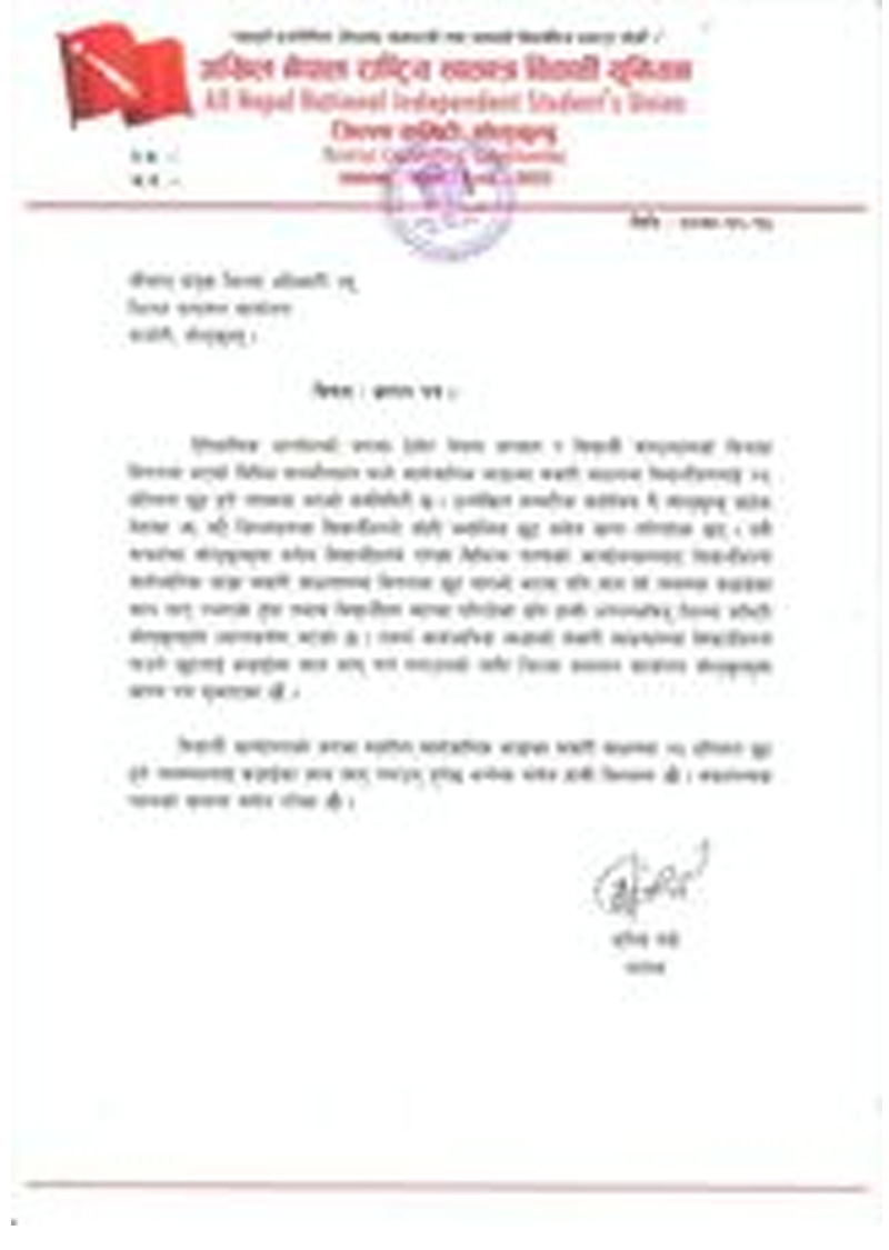 प्रमुख जिल्ला अधिकारी गणेश बिक्रम शाहीलाई बिहिवार ज्ञापनपत्र बुझाउंदै सो माग गरेको अनेरास्ववियु का नेता सरोज भट्टराईले जानकारी दिए। सो संगठनका सोलुखुम्बु जिल्ला कमिटी अध्यक्ष भुपेन्द्र राइको नेतृत्व गएको एक प्रतिनिधि मण्डलले मुलुकका अन्य ७६ जिल्लामा विद्यार्थीहरुले यो सुबिधा उपभोग गरिरहंदा सोलुखुम्बुमा यसको कार्यान्वयन नहुनु आश्चर्यजनक भएको भन्दै प्रजिअ शाहीको ध्यानाकर्षण गराएका थिए।