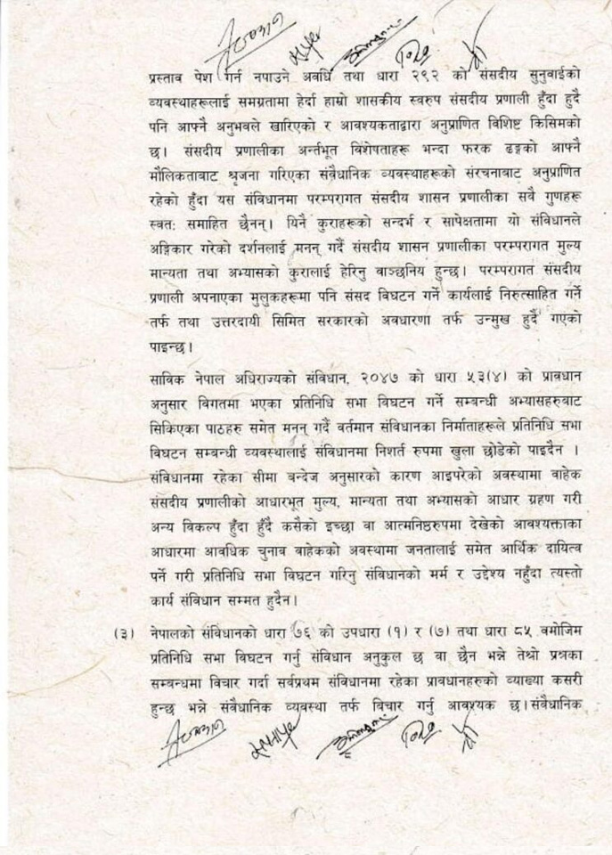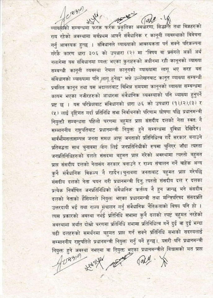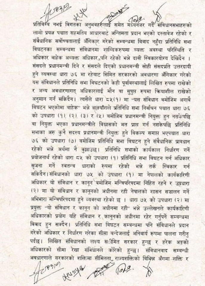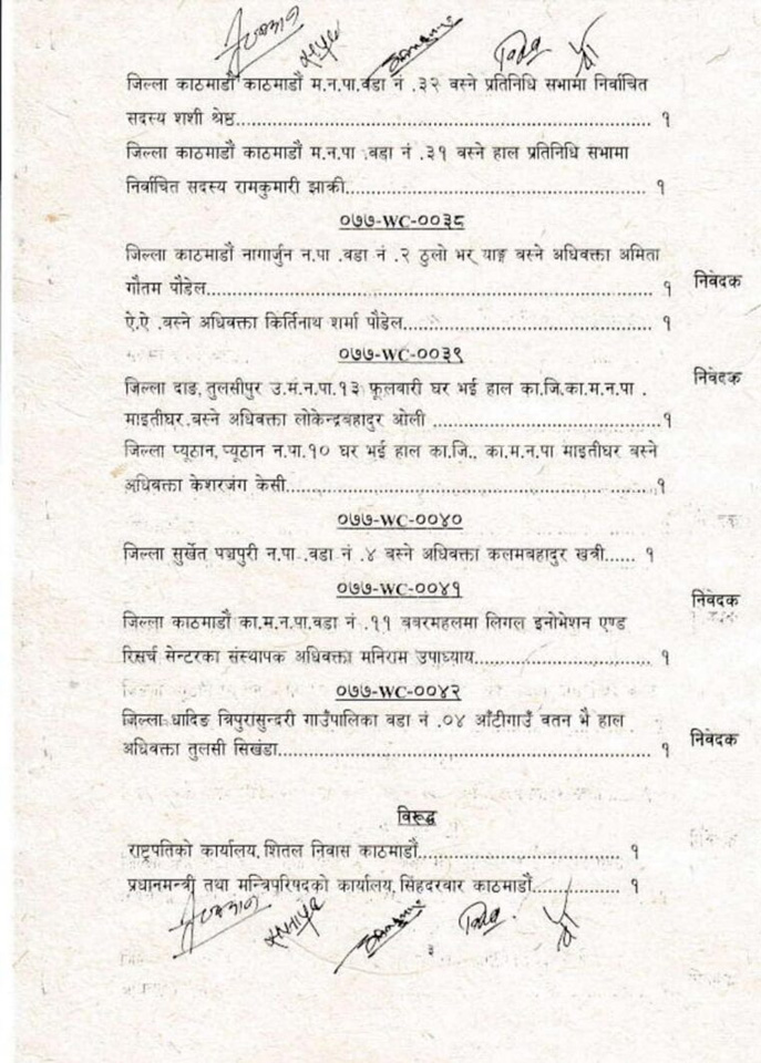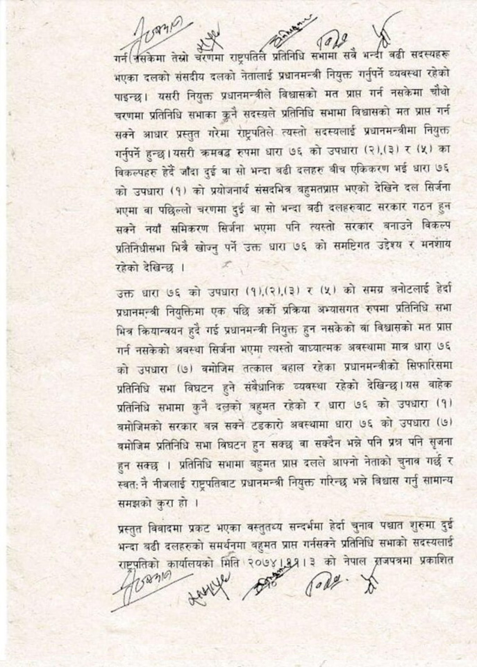 गत ५ पुसमा प्रधानमन्त्री केपी शर्मा ओलीले असंवैधानिक ढंगले संसद विघटन गर्न राष्ट्रपतिसमक्ष सिफारिस गरेका थिए।