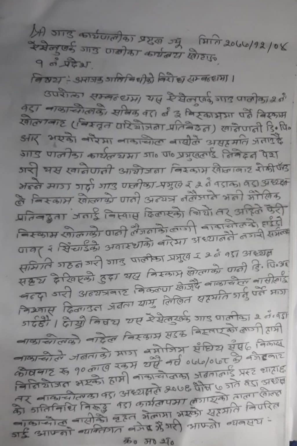 हेर्नुहोस् बाकाचोलबासीले बुझाएको विरोध पत्र