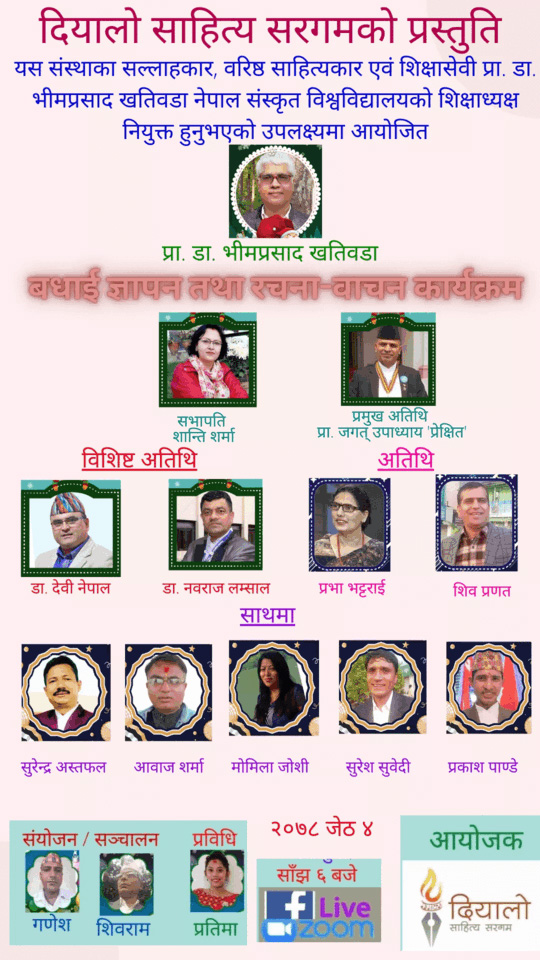 शिक्षाध्यक्ष प्रा.डा. भीम खतिवडाको सम्मानमा दियालो साहित्य सरगमको बधाई तथा रचना बाचन