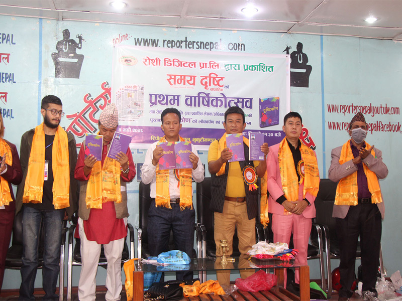 ‘समय दृष्टि’ साप्ताहिकको प्रथम बार्षिकोत्सबमा स्तम्भकार जंगमको ‘दृष्टिकोण’ लोकार्पित