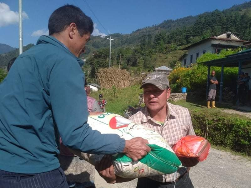 सोलुखुम्बु।सोलुदुधकुण्ड नगरपालिका वडा नं ७ स्थित बाराने टोलका पहिरो पीडितलाई राहत बितरण गरिएको छ।