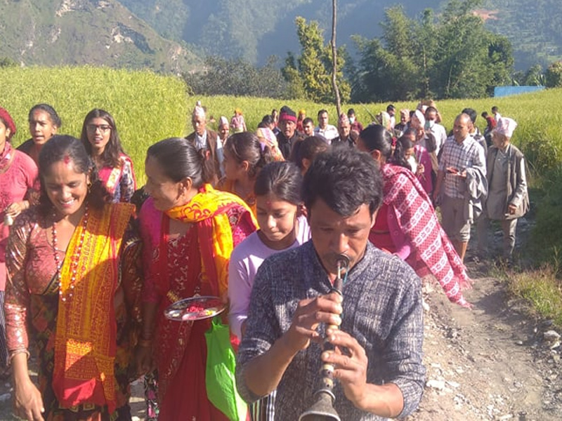 नेचासल्यान : सिंहदेवी मन्दिरमा हर्ष बढाँईका साथ भित्र्याईयो फूलपाती