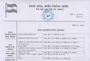 महाधिवेशन प्रतिनिधिको अन्तिम नामावली प्रकाशन मंसिर २४ गते बिहान १० बजे हुनेछ भने उम्मेदवारको मनोनयन दर्ता मंसिर २५ गते बिहान १० देखि ५ बजेसम्म हुनेछ ।