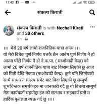पार्टीको १ नं प्रदेश कमिटीको सम्मेलनमा भाग लिन बिराटनगर पुगेका किरांतीले सोमबार सामाजिक सन्जाल फेसबुकमार्फत माओवादी राजनीतिबाट विश्राम लिएको घोषणा गरेका हुन् ।सामाजिक सन्जालमा किराँतीले ुमेरो २० बर्ष लामो राजनीतिक यात्रा अन्त्यु भन्दै आजकै मितिदेखी लागू हुनेगरी माओवादी केन्द्रको कुनै पनि जिम्मेवारीका साथै साधारण सदस्य समेतबाट बिदा लिएको उल्लेख गरेका छन् ।अहिलेसम्मको सद्भाव र सहकार्यका लागि सम्पूर्ण नेता कार्यकर्ता र सहयोद्दाहरुप्रति कृतज्ञता समेत प्रकट गरेका छन्।