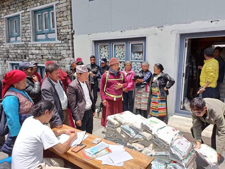 सोलुखुम्बु। जिल्लाको खुम्बु पासाङल्हामु गाउँपालिका वडा नं १ का ५ सय ४८ घरपरिवारलाई राहत बितरण गरिएको छ।