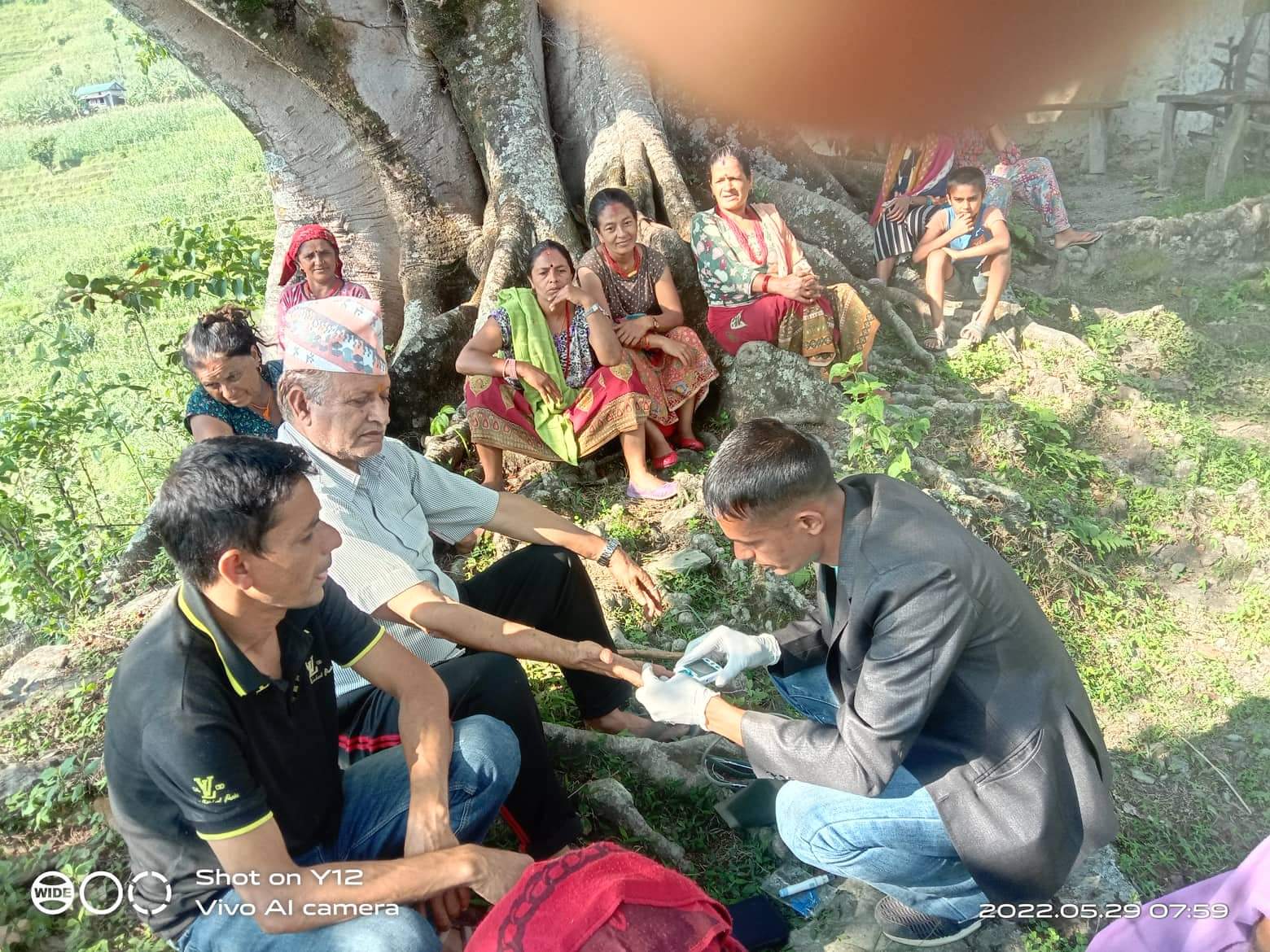 सो क्रममा वृद्धवृद्धा,अशक्त र दीर्घ रोगीहरुको रक्तचाप ,ज्वराे ,सुगर जस्ता जाँच नि:शुल्क गरेको उनले बताए।घलेसुँगारामा २३ र बेंसी गाउँमा ३७ जनाको जांच उनले गरेका थिए।ती मध्ये अधिकांशमा उच्चरक्तचाप र झण्डै आधामा सुगरको मात्रा देखिएको छ।उनीहरूलाई तह र क्षमता अनुसारको सल्लाह दिने र नियमित औषधि सेवनकर्ताहरुको औषधि हेरिदिने गरेको छु,- उनले भने ।