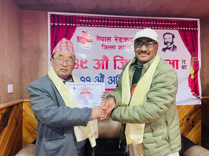 सोलुखुम्बु।नेपाल रेडक्रस सोसाइटी जिल्ला शाखा सोलुखुम्बुको सभापतिमा पुनः रामकाजी श्रेष्ठ चयन भएका छन्।शाखाको शनिबार सम्पन्न ४५ औ जिल्ला सभा तथा ११ औं अधिवेशनले श्रेष्ठलाई सभापतिमा निर्बिरोध चयन गरेको हो ।