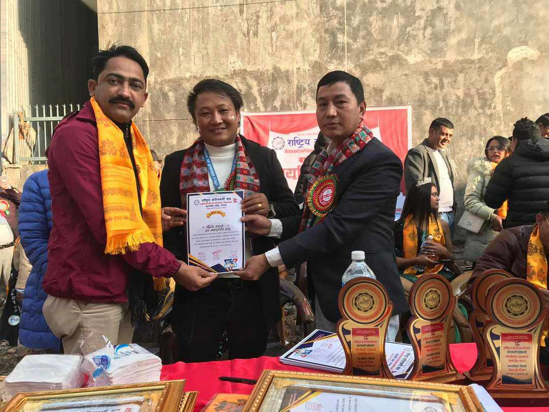 कार्यक्रममा प्रमुख अतिथि घिसिङले राष्ट्रिय संगीतकर्मी संघ बागमती प्रदेश समितिबाट गीत संगीतकाे माध्यमबाट समाजमा याेगदान पुर्याउनु भएका कलाकर्मीहरु सम्मान-पत्र र प्रशंसा-पत्रबाट सम्मान गर्नुभएको थियो।