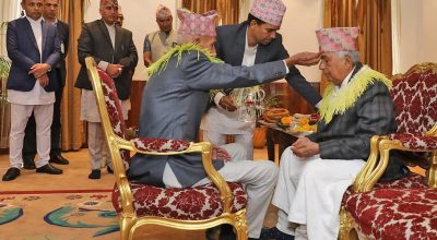 राष्ट्रपति पौडेलले दाजु डुण्डीराजको हातबाट ग्रहण गरे टीका