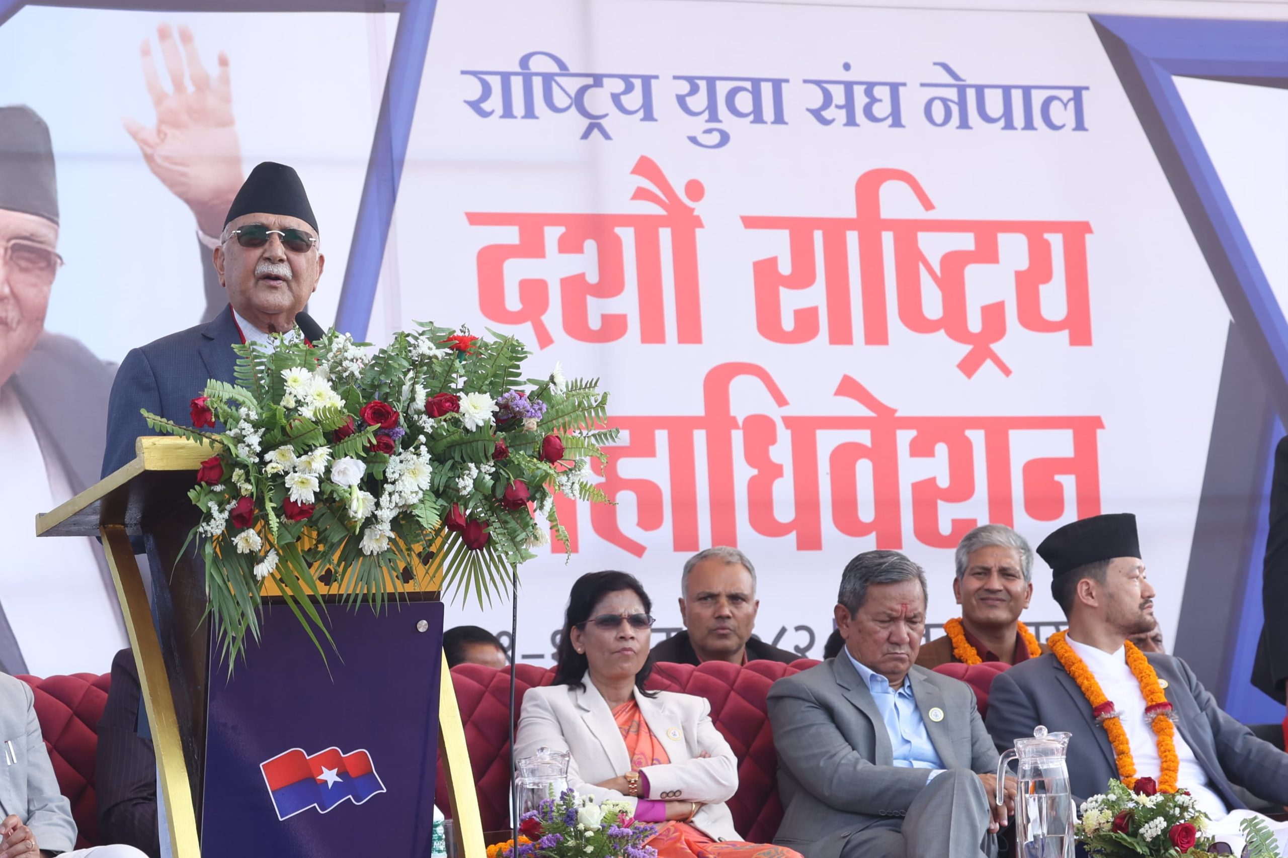 “प्रधानमन्त्रीलाई भाग्न हेलिकोप्टरको सुविधा दिने जस्ता उत्ताउलो कुरा पनि गरेका छन् । म भन्न चाहान्छु, कुनै पनि प्रतिगमनको कुचेष्ठालाई धुलो पिठो बनाइन्छ । त्यस्ता प्रयास रोग्ने अग्रभागमा युवा संघ आउनुपर्छ । कुनै पनि समय हामी त्यस्ता प्रयासलाई नियन्त्रण गर्न अगाडि बढ्नुपर्ने हुन्छ । तयारी अवस्थामा रहन म सबैलाई आग्रह गर्छु ।”, अध्यक्ष ओलीले भन्नुभयो, “एमालेमाथि आन्तरिक र बाह्य पक्षहरु तथा विरोधीहरुको केन्द्रीकृत र चौतर्फी आक्रमण गरेका छन् । एमालेले गल्ती गरेको भए अहिले हामी जुन ठाउँमा छौैँ, त्यस ठाउँमा आउन दिने थिएनन् । हामी सही नीति, सुशासन र विकासका निम्ति काम गर्ने पार्टी हो । एमालेको पक्षमा बोल्दा झोले भनेर हहतोत्साहित गर्नेहरुको भ्रम र अन्योलमा नपरी आफ्ना कर्तव्य पूरा गर्न म आग्रह गर्दछु ।”