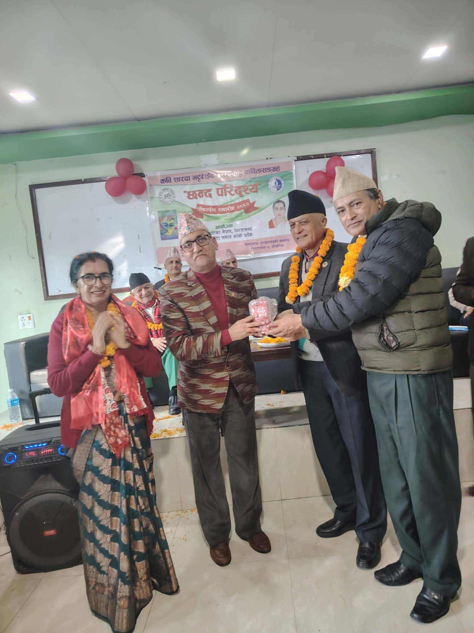 विराटनगर,११ पौष । कवि शारदा भट्टराईको छन्दोबद्ध कवितासङ्ग्रह “छन्द परिदृश्य” लोकार्पण भएको छ ।