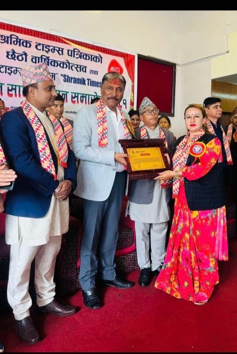 श्रमिक टाइम्सको बार्षिकोत्सवमा पत्रकार अधिकारीसहित विभिन्न व्यक्तित्व सम्मानित