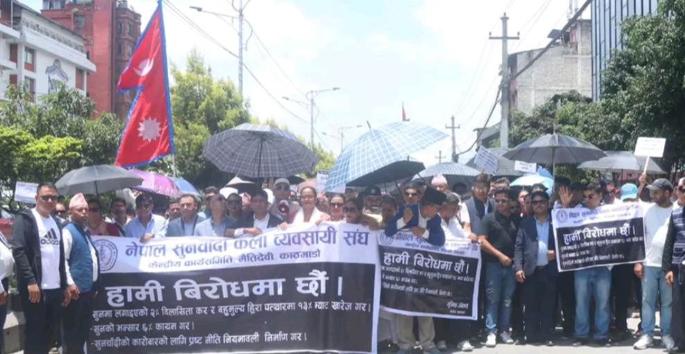 काठमाडौं,२७ असार । विलासी करको विरोधमा आन्दोलन गर्दै आएका देशभरका सुनचाँदी व्यवसायीहरूले आन्दोलनका कार्यक्रम स्थगित गरेर आजदेखि नियमित ब्यबसाय सञ्चालन गर्ने भएका छन् । बिहीबार अर्थ मन्त्रालयमा भएको वार्तामा सरकार