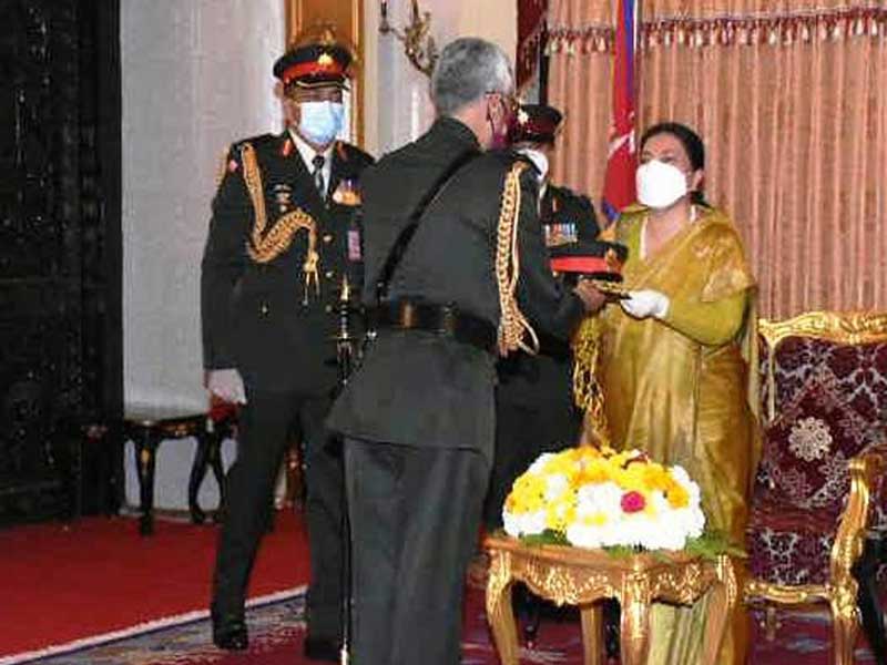 राष्ट्रपतिद्वारा भारतीय सेनाध्यक्षलाई नेपाली सेनाको मानार्थ महारथी दर्जा प्रदान