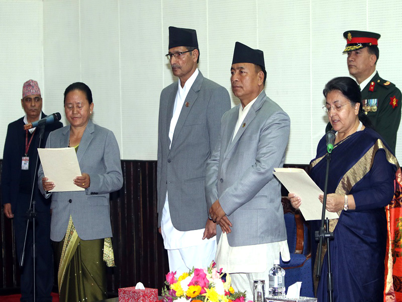 काठमाडौं । राष्ट्रपति विद्यादेवी भण्डारीले नवनियुक्त कानून, न्याय तथा संसदीय मामिलामन्त्री डा शिवमाया तुम्वाहाङ्फेलाई पद तथा गोपनीयताको शपथ गराउनुभएको छ । राष्ट्रपति भवन शीतल निवासमा अपराह्न आयोजित समारोहमा राष्ट्रपतिबाट नवनियुक्त