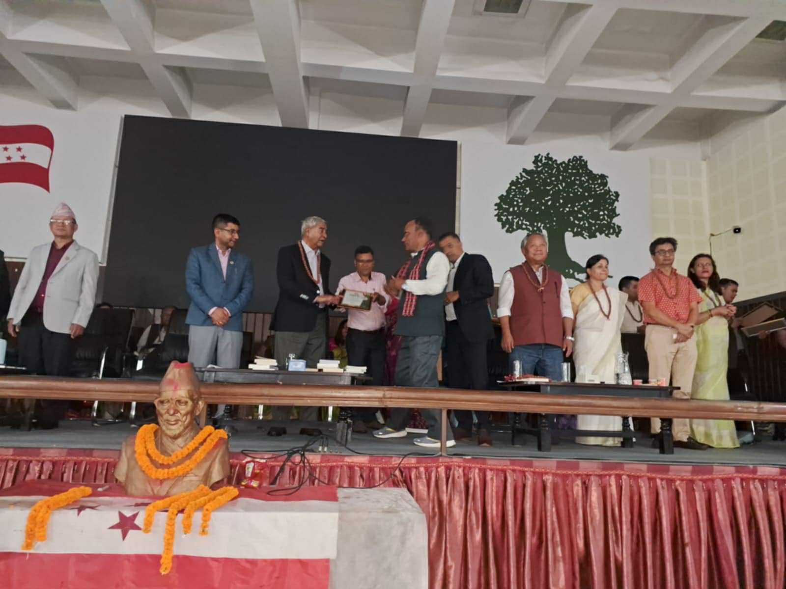 ईशा अधिकारी,काठमाडौं,७ साउन । नेपाली कांग्रेस महाधिवेशन प्रतिनिधि भरत चौलागाईँलाई पार्टीले सम्मान गरेको छ । सोमबार पार्टीको केन्द्रीय कार्यालयमा आयोजित कार्यक्रममा चौलागाईँलाई सभापति शेरबहादुर देउवाले सम्मान गर्नुभएको हो । पार्टीले