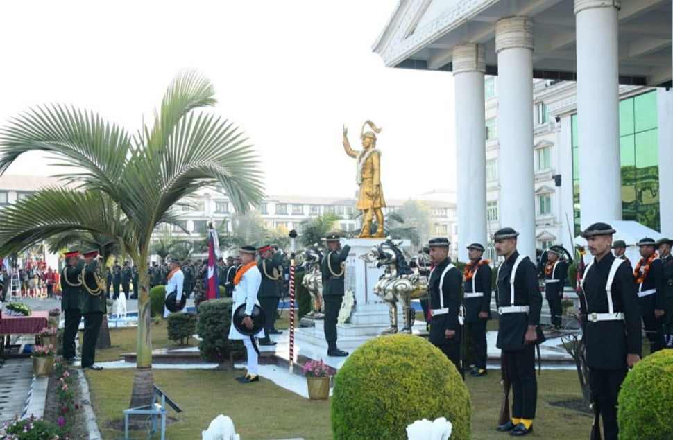 काठमाडौँ,२७ पौष ।३०४ औँ पृथ्वी जयन्ती तथा राष्ट्रिय एकता दिवस–२०८२ का अवसरमा नेपाली सेनाले देशभर विविध कार्यक्रमहरूको आयोजना गरेको छ। आज जङ्गी अड्डामा आयोजित विशेष समारोहमा राष्ट्रनिर्माता श्री ५ बडामहाराजधिराज