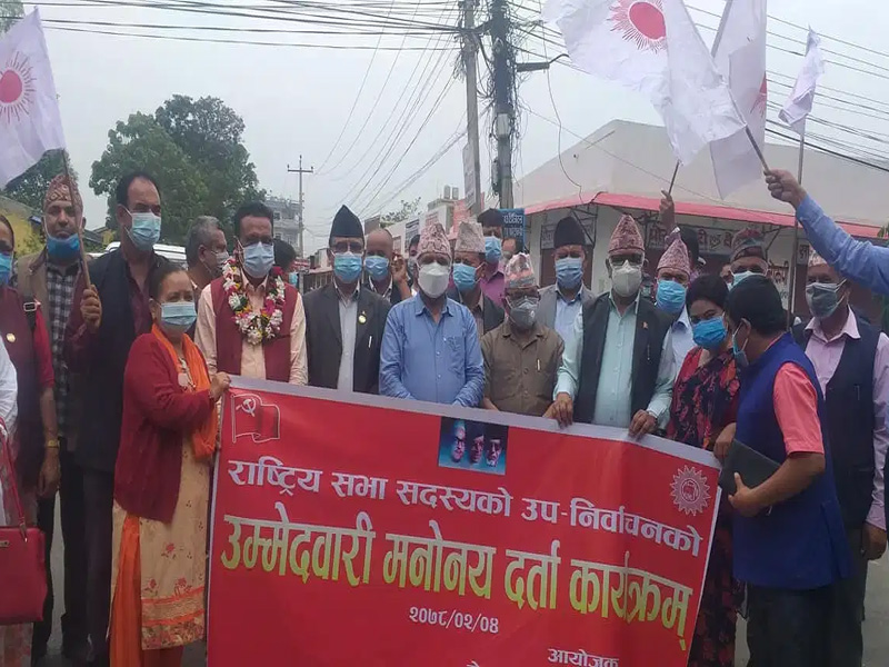 दाङ । राष्ट्रिय सभा सदस्य उपनिर्वाचनका लागि लुम्बिनी प्रदेशमा दुईजनाको उम्मेद्वारी परेको छ । कांग्रेस, माओवादी केन्द्र, जनता समाजवादी पार्टी र राष्ट्रिय जनमोर्चाका तर्फबाट दृगनारायण पाण्डे र एमालेका तर्फबाट चन्द्रबहादुर
